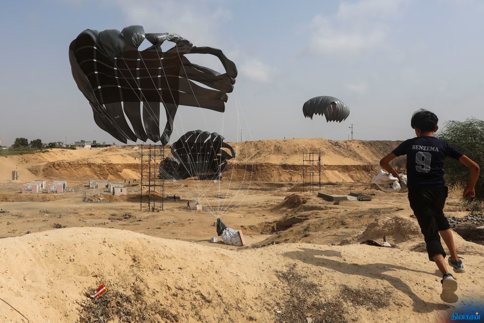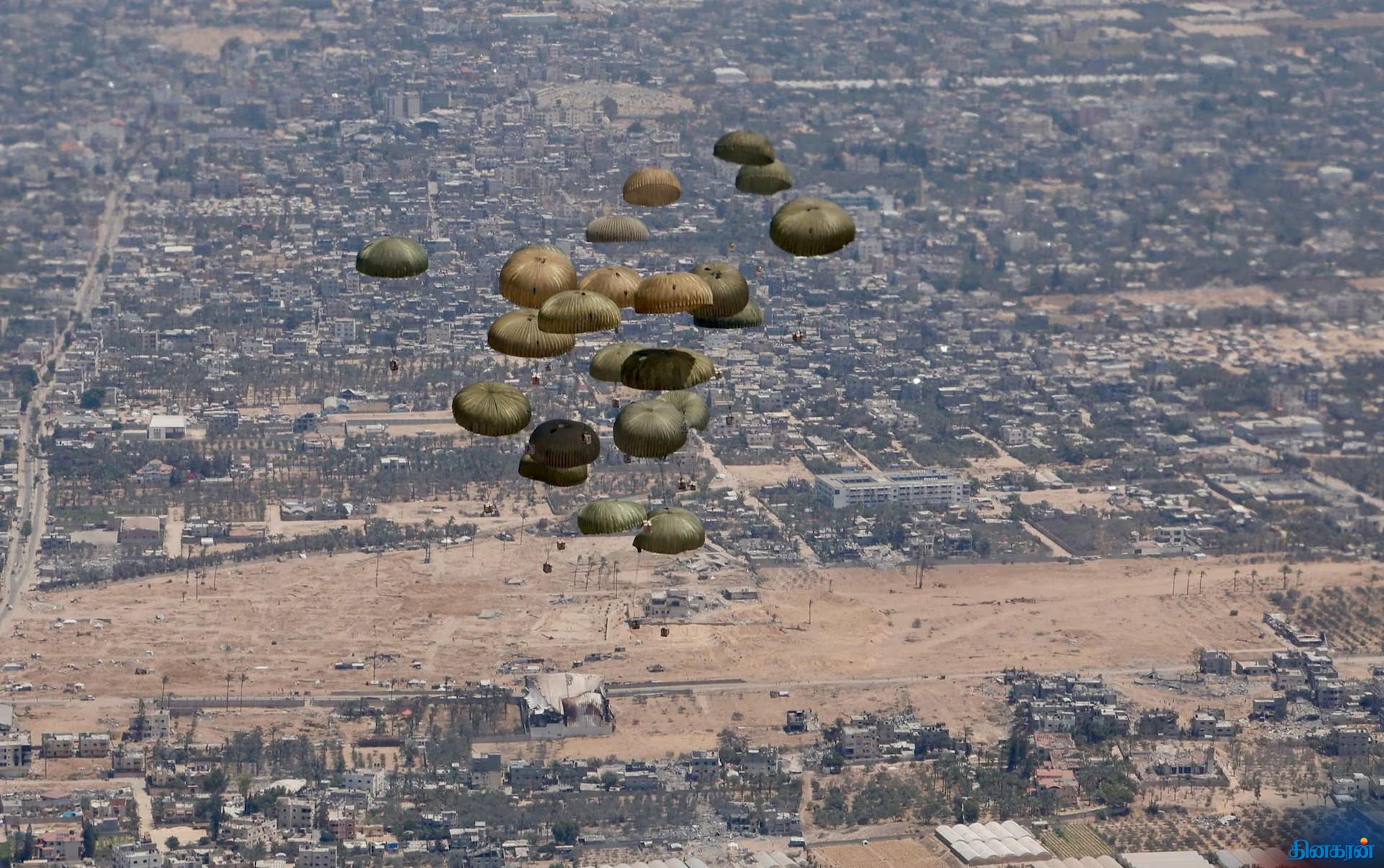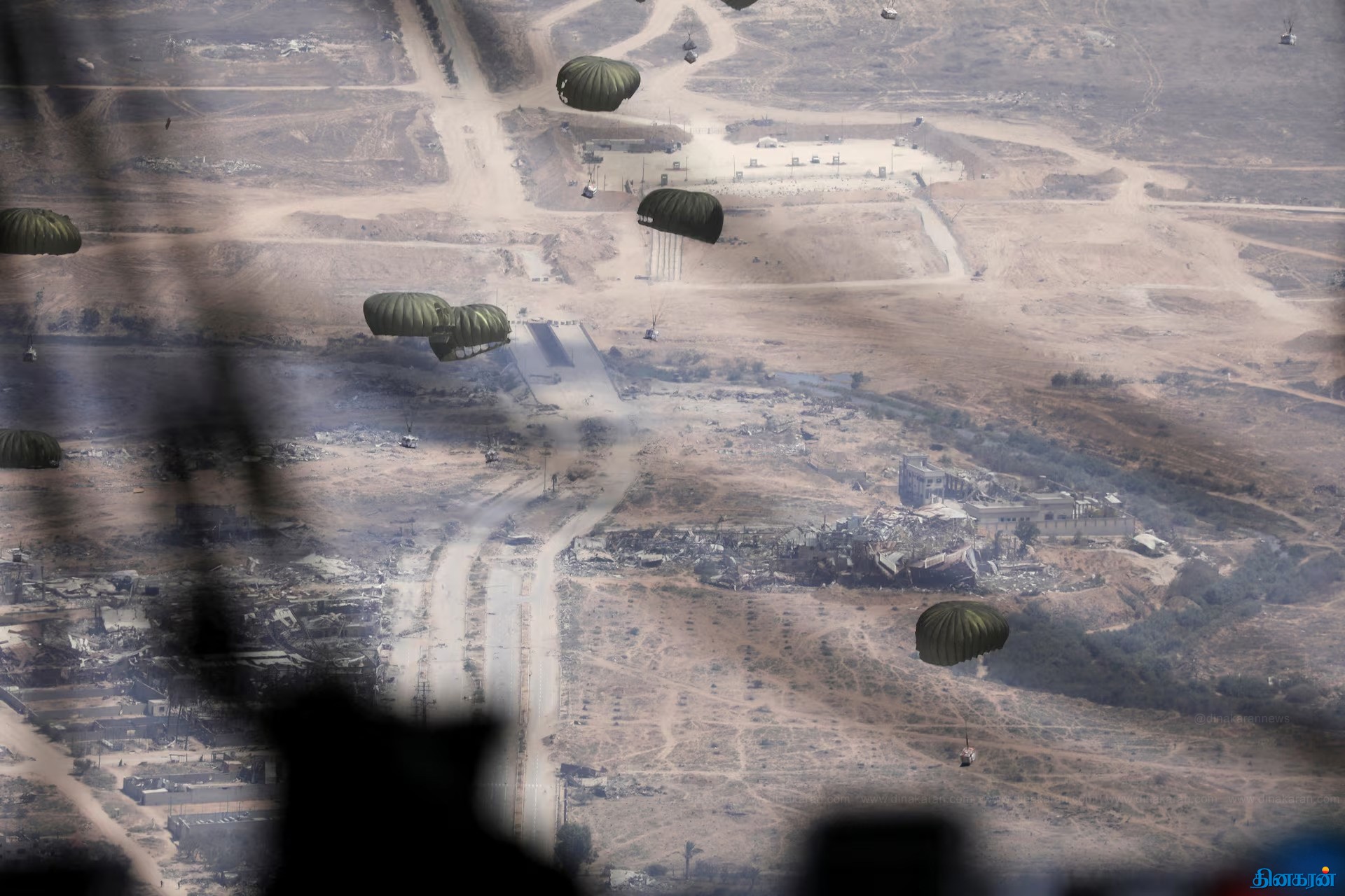 காசாவில் பசி நெருக்கடியை குறிவைத்து விமானங்கள் மூலம் வீசப்படும் உணவுப் பொருட்கள்..!!