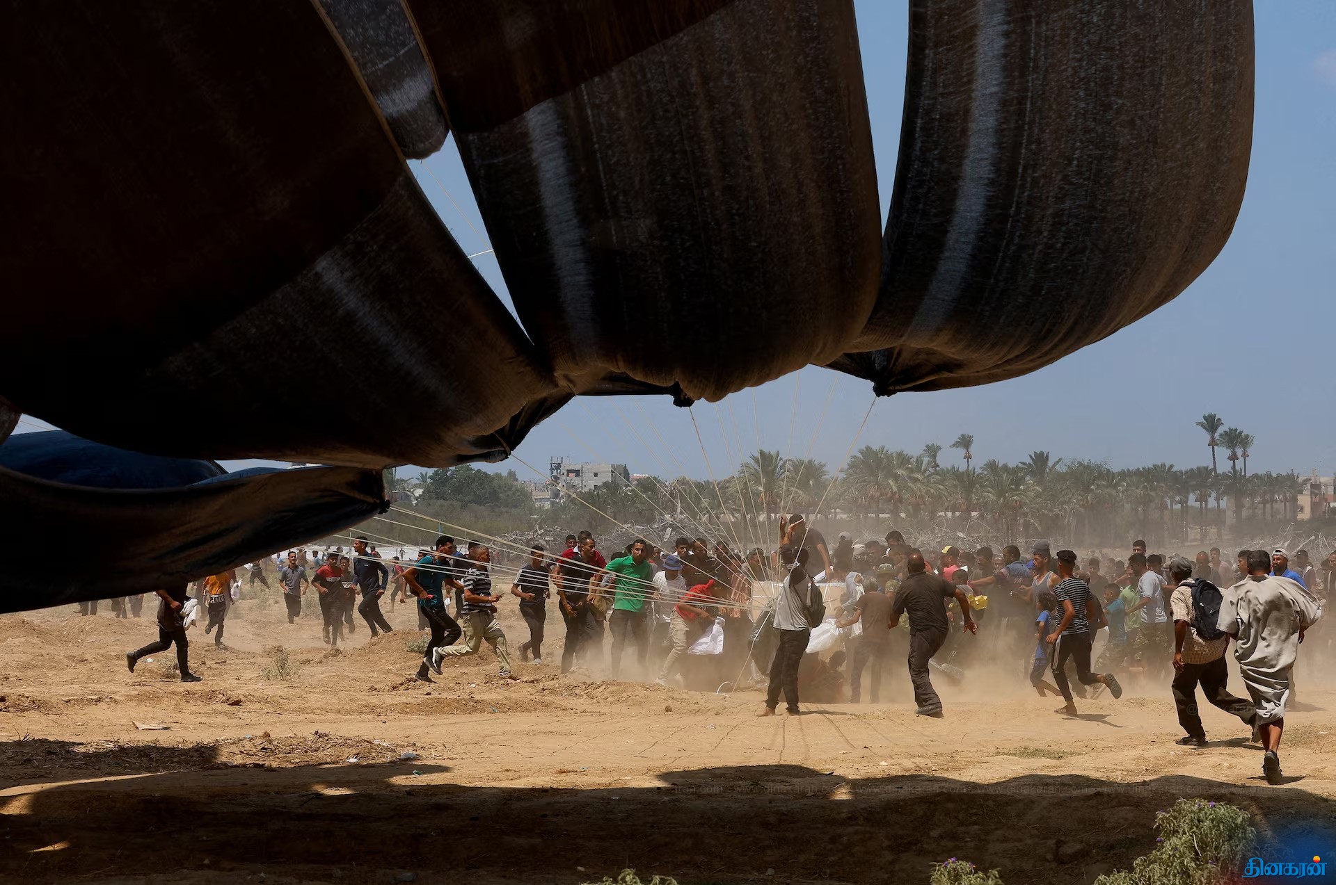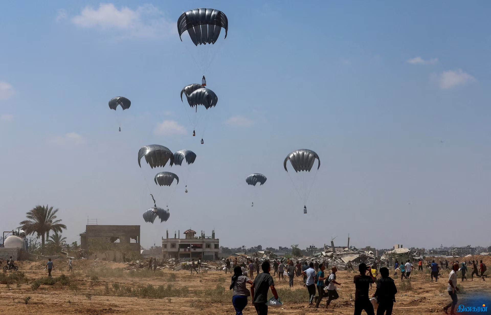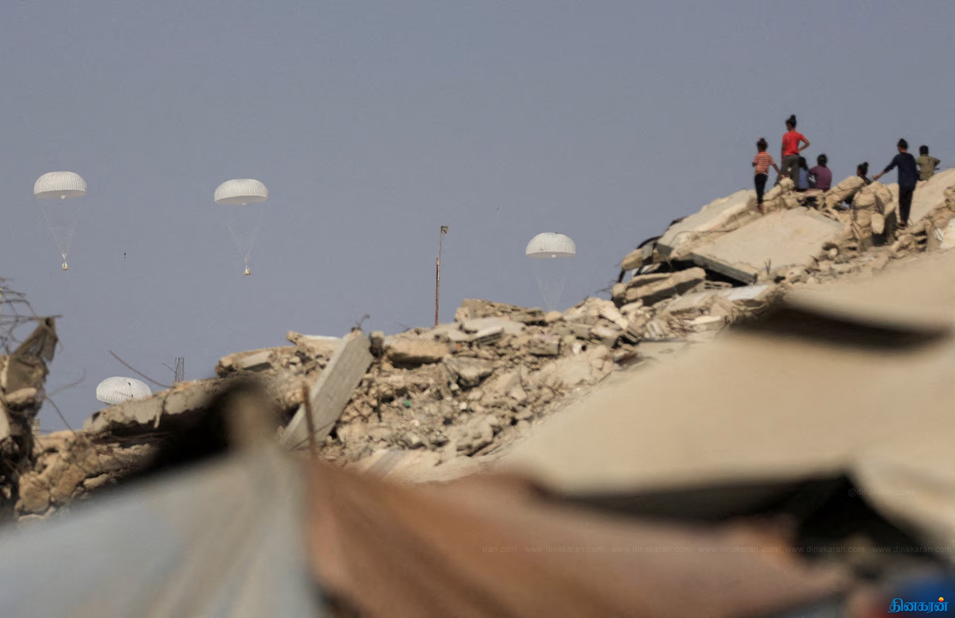 காசாவில் பசி நெருக்கடியை குறிவைத்து விமானங்கள் மூலம் வீசப்படும் உணவுப் பொருட்கள்..!!