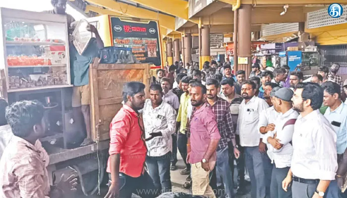 ஆனால் அகற்றப்பட்ட கடைகளை மீண்டும் அங்கேயே வைத்து ஆக்கிரமிப்பு செய்யப்பட்டது. இதுதொடர்பான வீடியோ சமூக வலைதளங்களில் பரவி வைரலாகி வந்தது. இந்த நிலையில் இன்று காலை மாநகராட்சி கமிஷனர் ரஞ்ஜீத்சிங் தலைமையிலான அதிகாரிகள் புதிய பேருந்து நிலையத்திற்கு சென்றனர். அங்கு ஆக்கிரமிப்பு செய்யப்பட்டிருந்த கடைகளை அகற்ற தீவிரமாக நடவடிக்கை எடுத்தனர். அப்போது கடைகள் ஒதுக்கப்பட்ட இடத்தை விட்டு அதிகமாக ஆக்கிரமிப்பு செய்து பொருட்கள் கடைக்கு வெளியே வைக்கப் பட்டிருந்தது. அந்த பொருட்கள் அனைத்தும் அங்கிருந்து அகற்றப்பட்டது.