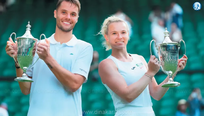 லண்டன்: விம்பிள்டன் கிராண்ட்ஸ்லாம் டென்னிஸ் தொடரில் முதல் இறுதி ஆட்டமாக கலப்பு இரட்டையர் ஆட்டம் நடந்தது. அதில் செம் வெர்பீக் (நெதர்லாந்து) / கேத்ரினா சினியகோவா (செக் குடியரசு), ஜோ சாலிஸ்பெரி (பிரிட்டன்)/ லூசியா ஸ்டெஃபானி (பிரேசில்) ஆகியோர் மோதினர். இப்போட்டியில், செம்/சினியகோவா இணை 7-6 (7-3), 7-6 (7-3) என நேர் செட்களில் வென்று சாம்பியன் பட்டம் வென்றது.